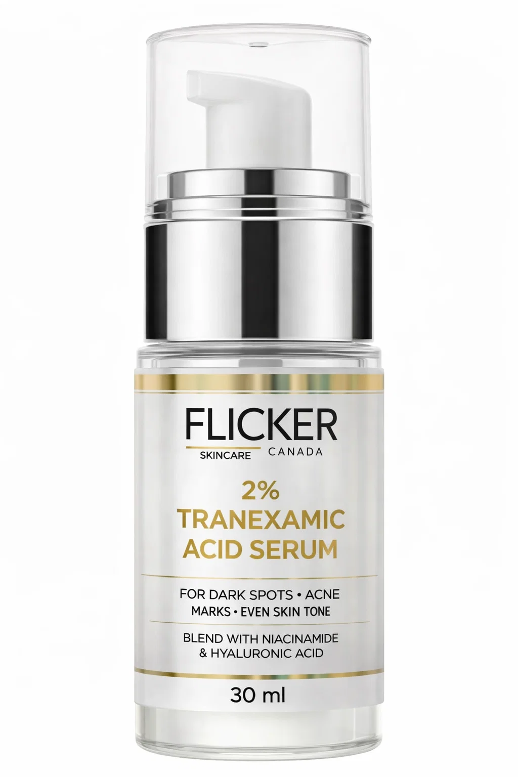 Contains tranexamic acid (2%), a proven depigmenting agent, paired with niacinamide, licorice root extract, and alpha-arbutin. The base includes glycerin and panthenol for hydration and skin-soothing effects. Often free from alcohol and artificial fragrance.
